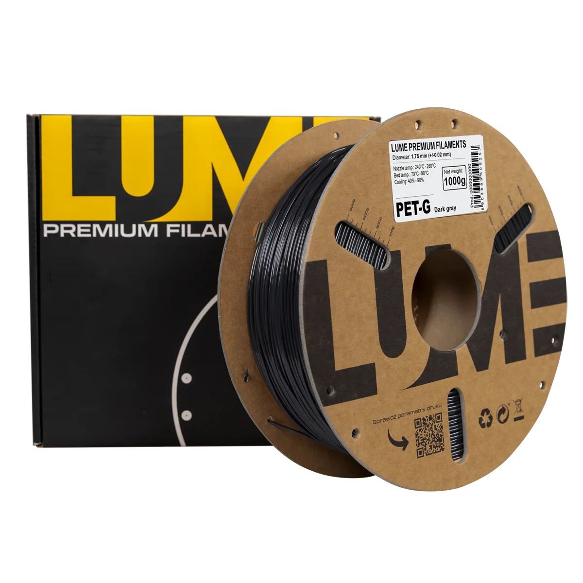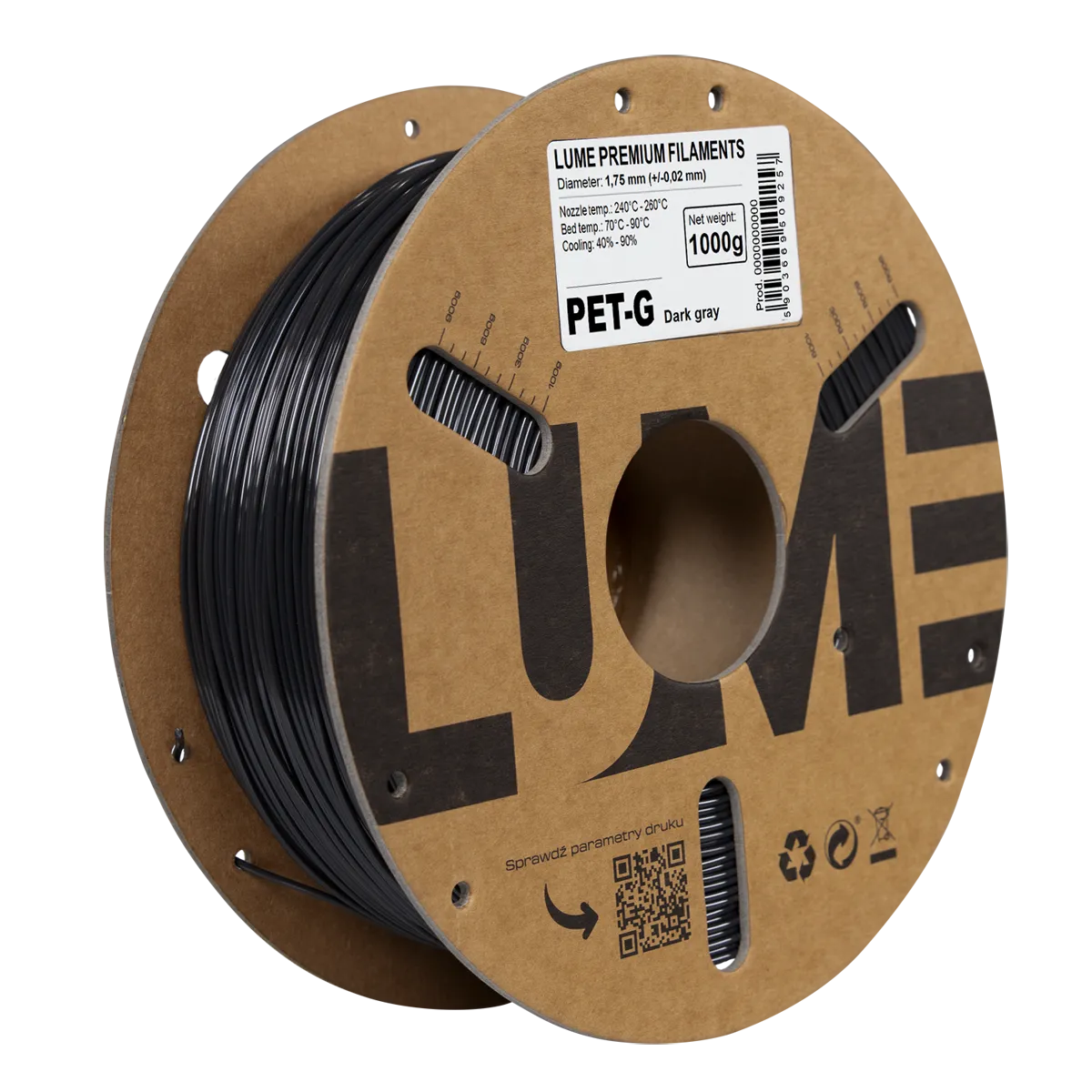 Filament PET-G SZARY CIEMNY 1,75 mm 1 kg LUME – precyzja druku 3D i transparentna jakość