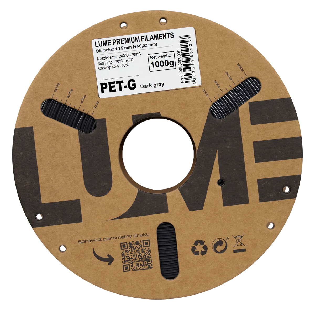 Wybierając PET-G SZARY CIEMNY LUME, inwestujesz w materiał, który zapewnia powtarzalne rezultaty, estetyczny wygląd wydruków i komfort pracy. To filament, który pozwala skupić się na projekcie, a nie na walce z ustawieniami. Jeżeli zależy Ci na niezawodnym materiale do codziennego użytku i projektów wymagających wysokiej jakości wizualnej — LUME spełni te oczekiwania.