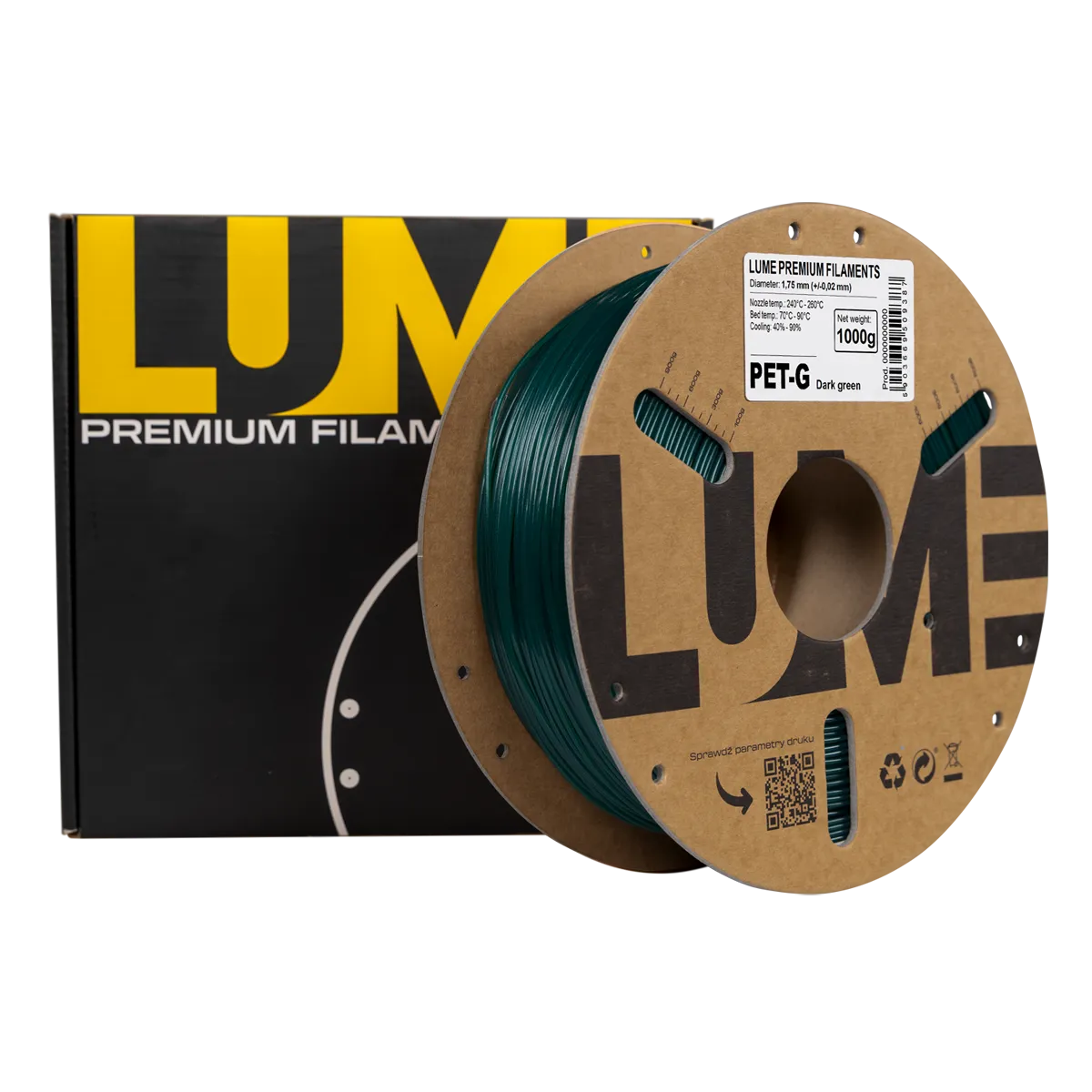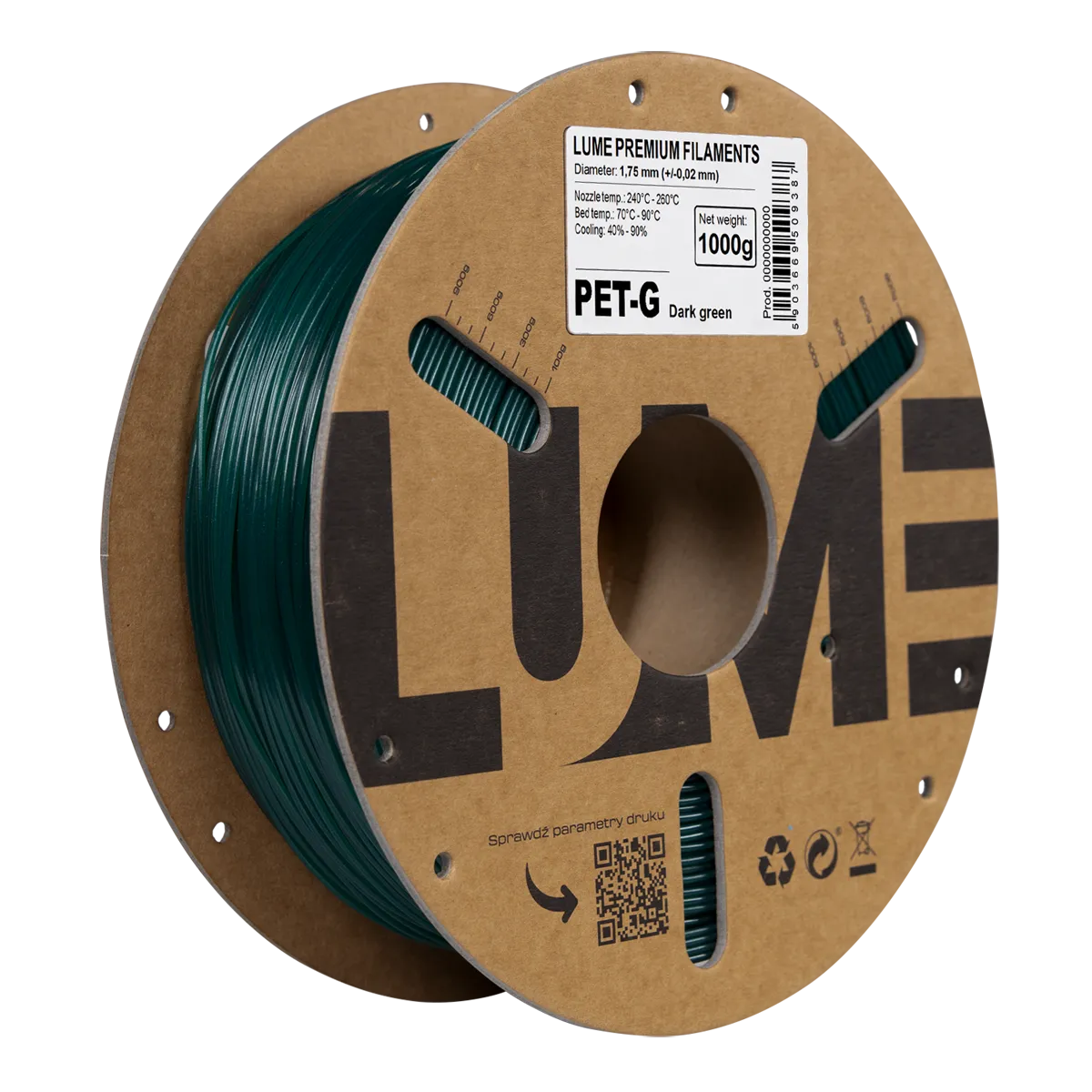 Filament PET-G ZIELONY CIEMNY 1,75 mm 1 kg LUME – precyzja druku 3D i transparentna jakość