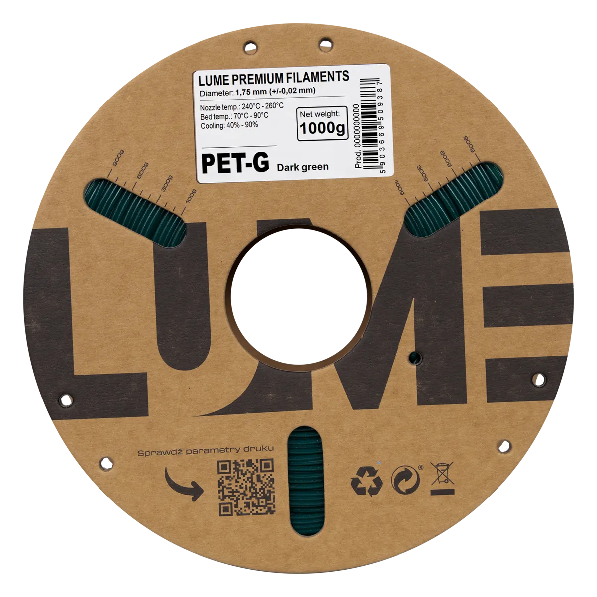 Filament PET-G ZIELONY CIEMNY do drukarek 3D 1,75 mm 1kg LUME